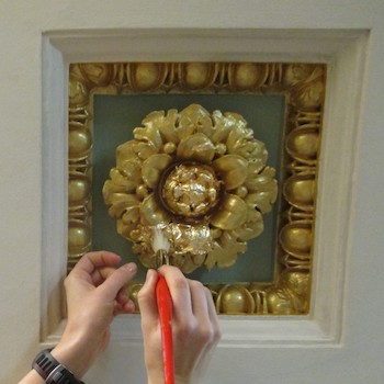 Decorative plaster repair, conservation and restoration; analysis, consolidation, mold fabrication and casting for ceiling and wall plaster ornament.