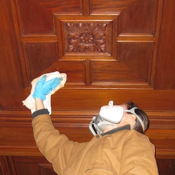 Analysis, cleaning, conservation, restoration and touch up. Application of shellac, varnish, lacquer, French polish, wax and oil finishes; restoration and repair of wood paneling, columns and capitals; wood epoxy consolidation.